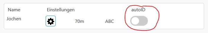 Diese Nummern werden beim Schießen automatisch in der RyngDyng App zur Auswahl angeboten. Hierfür ist es sehr praktisch, die autoID-Funktion am Ende der Seite 'Treffer' zu aktivieren: