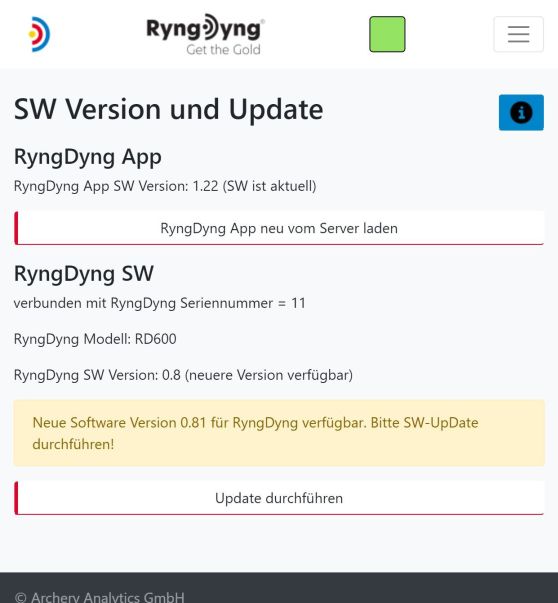 Falls eine neue Version der RyngDyng App verfügbar ist, so wird ebenfalls auf dieser Seite angezeigt.