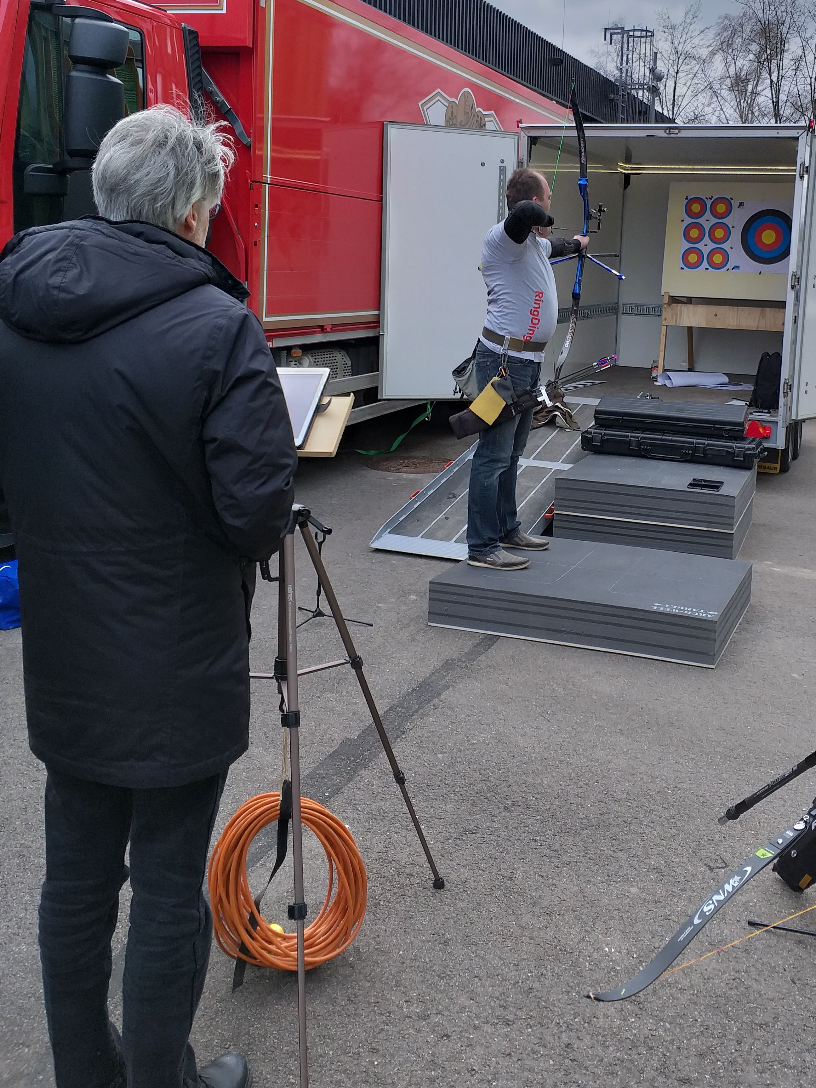On February 25, 2023, the final of the German Recurve Bow league (Bundesliga) took place in Wiesbaden. The competition was held on 4 lanes in parallel, with 2 teams competing against each other. All arrows were recorded with RyngDyng systems and displayed in the live TV stream. This made it possible to output the scores in real time and to indicate the intermediate result directly after each arrow. This noticeably increased the tension in the competition and also captivated the viewers at home who followed the stream on the Internet.