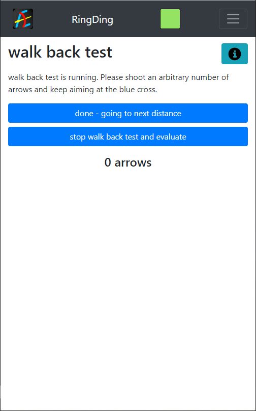 We implemented a statistical walk-back test in order to bring bow tuning to a next level. The possibility to record and calculate the connecting line between many arrows by means of statistics will lead to a much higher accuracy especially of button tuning for recurve or bare bows.