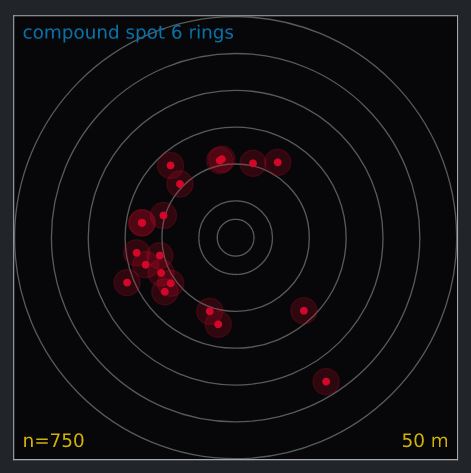 A compound archer recorded 750 arrows and ran the outliers per target and distance analysis. In this case, there is no comparison between different target types and distances, just a single compound spot target at 50m. The following image shows the result: