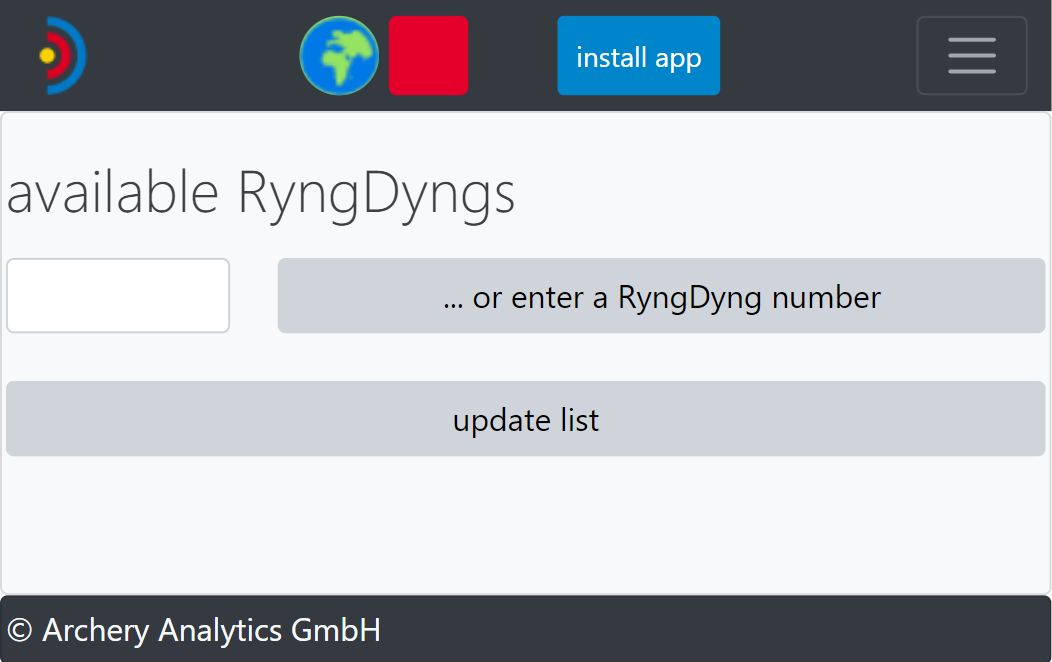 Not all of these features are available in all versions. It depends on the user's permissions which functions are enabled. For example, spectators can use the RyngDyng App to watch a tournament live. However, they cannot control the system. Archers with an Archery Analytics account can use the RyngDyng App to evaluate their personal saved hits and carry out tuning tests.