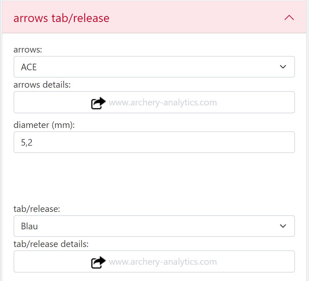 To select the material used, the arches, arrows and tabs/releases should first be created here on the server (e.g. under