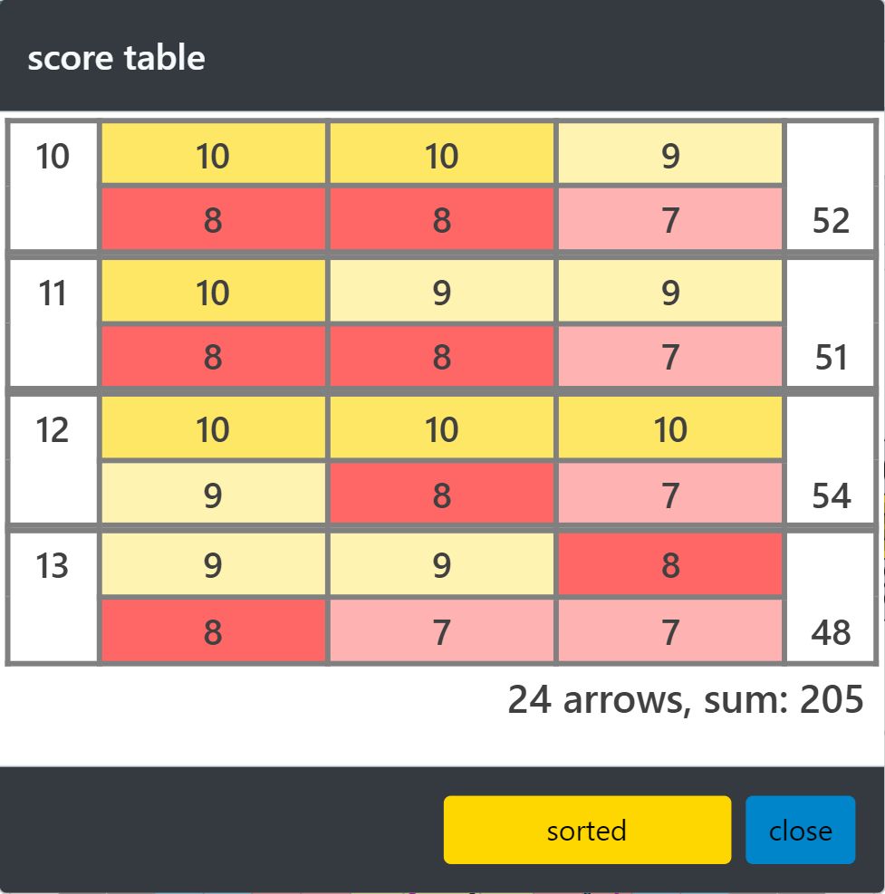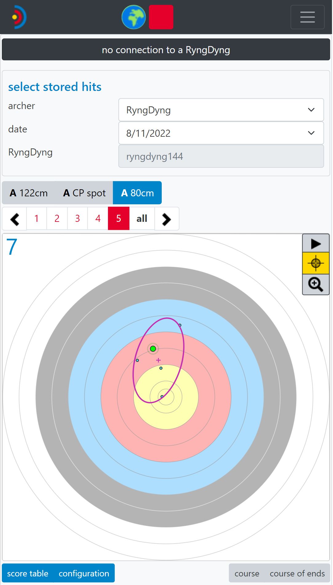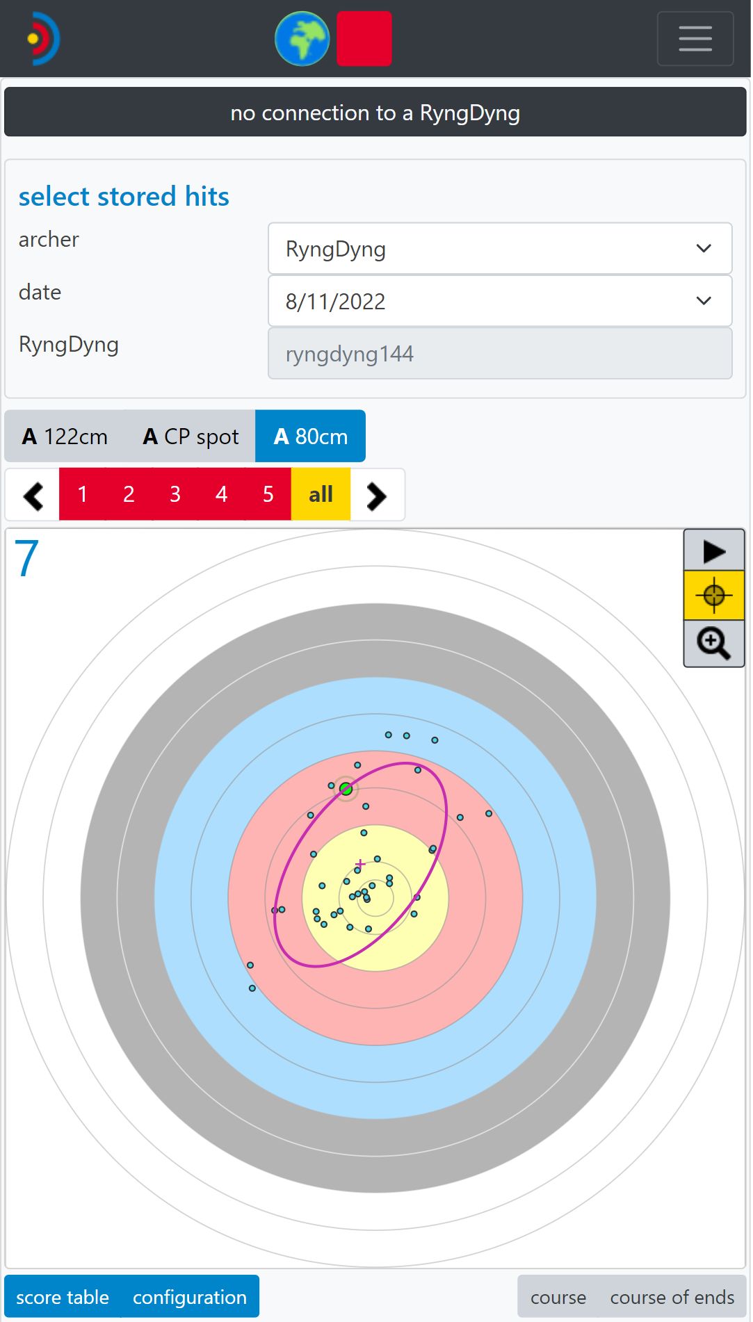 Basically, the RyngDyng app saves all hits that belong to the archers added to the app. So you first select the person in question and then the day for which the hits should be analyzed. After the hits have been retrieved, you will see which faces were shot on the selected day and which ends were recorded.