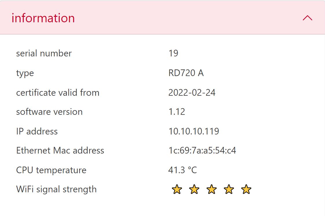 When the connection is established, some status information about the connected RyngDyng is displayed under information: