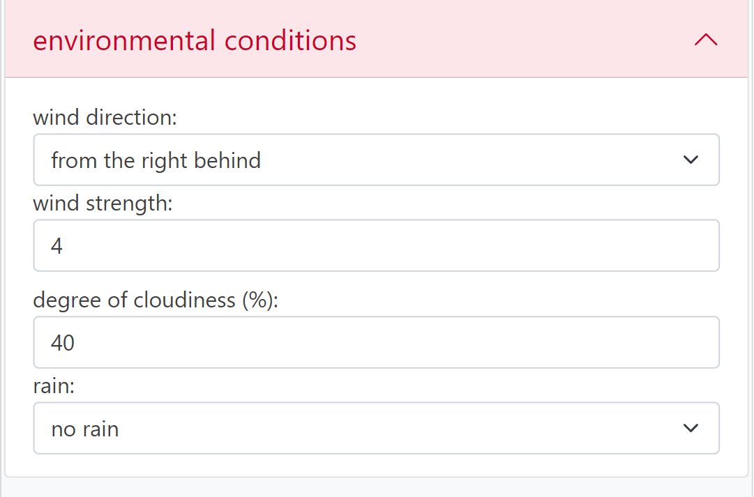 Sight settings and environmental conditions are other headings for important parameters that can be configured.